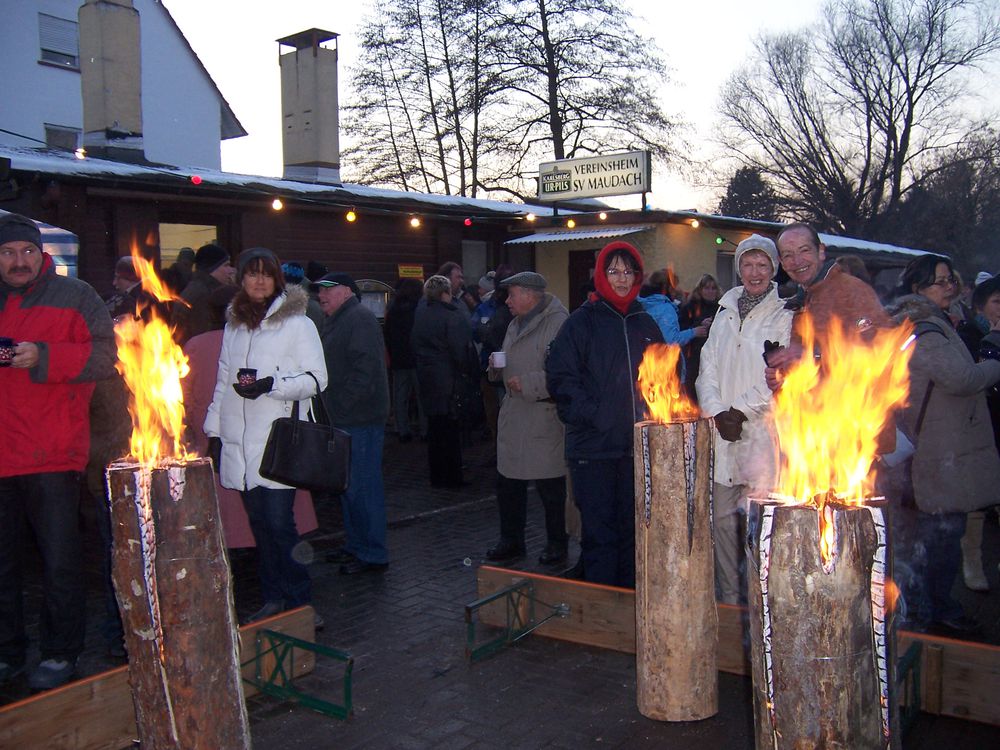 Es gibt Glühwein ( von Dornfelder Rorwein), der SV brät leckere Bratwürste und der TV Maudach bietet Waffeln an.
